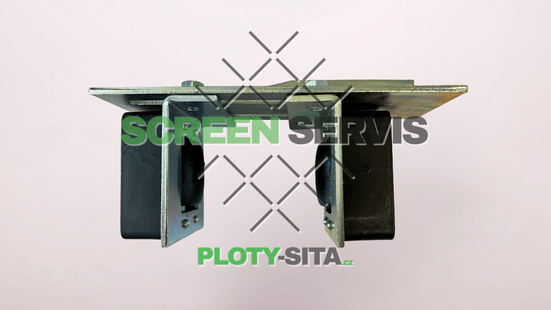 Horní koncový doraz s regulovatelnými nylonovými válci. Určen pro vedení a stabilizaci posuvné brány v koncové poloze.